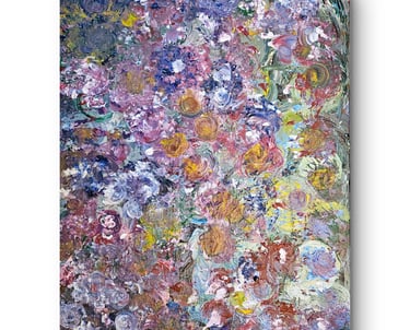 Questa realizzazione artistica è eseguita con acrilici su tela, dando vita a una texture ricca e vibrante. L'artista autodidatta impiega una disposizione circolare e vorticosa dei colori, creando un effetto tridimensionale unico. L'opera, datata 2025, appartiene al modernismo e si contraddistingue per la composizione astratta dai toni multicolori, incorniciando un'esplosione visiva dinamica e armoniosa. L'artista nei suoi dipinti lega le memorie visive ed olfattive e in questo caso l'avvolgente fragranza dei gelsomini, sensuale e fresca, viene rappresentata con fiori disposti in modo apparentemente caotico